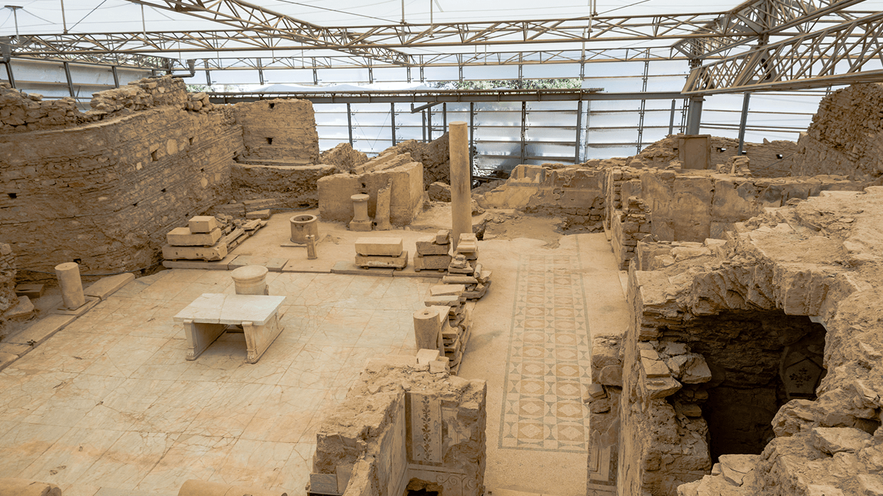 The Terrace Houses are situated on three terraces on the lower slopes of Mount Bülbül. This complex includes six residential units, the earliest of which dates back to the 1st century BC. These houses were in use until the 7th century AD, when they were abandoned due to social and economic changes in the region.