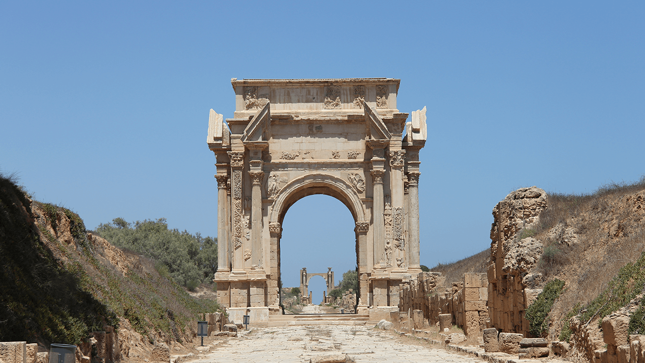 Улица Аркадия: место для прогулок с сохранившимися колоннами и историческими деталями.